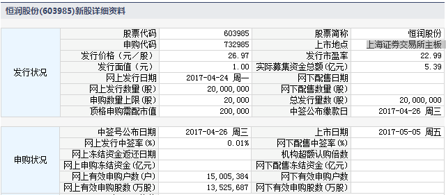 中国证券网讯 根据交易所公告,江阴市恒润重工股份有限公司于2017年5月5日起在上海证券交易所主板上市。