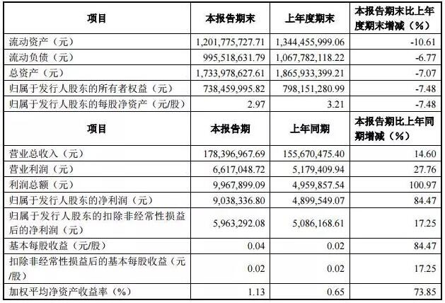 一季度主要财务数据