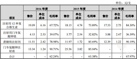 值得一提的是,卫信康的主导产品是包括注射用 12 种复合维生素、注射用门冬氨酸钾镁、蔗糖铁注射剂、门冬氨酸钾注射液等市场空间较大、技术门槛较高的产品。