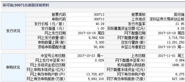 根据交易所公告,深圳市英可瑞科技股份有限公司于2017年11月1日起在深圳证券交易所创业板上市交易。