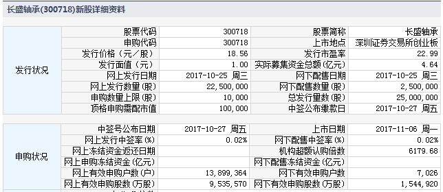 根据交易所公告,浙江长盛滑动轴承股份有限公司于2017年11月6日起在深圳证券交易所创业板上市交易。
