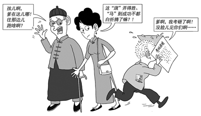 无奈媒体与专家似乎并不生气,有的还顺势鼓励父亲穿上马褂,意为“马到成功”!笔者再补一句:千万不要穿西装,因为“西边的太阳就落山了”。