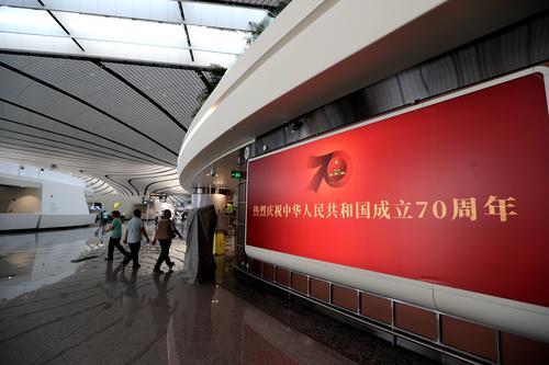 图为机场“喜迎建国70周年”展板一角。东方IC