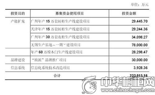 2016年7月14日,欧派家居更新股票招股说明书。方案披露,欧派集团拟将发行新股的数量不超过5000万股,募集资金约23.30亿元;从下述具体募集资金项目来看,欧派募股主要用于产能扩充,注重对全国各方位工厂的产能提升,也看重近年来销售额逐步提升的木门生产线的建设;另外,品牌的推广建设和信息系统的改造已成为募股标配。衣柜板块增速持续提升,门窗平稳发展,全产业链布局发育良好,破百亿趋势不可阻挡。业绩傲人无人“比肩”;全屋定制MALL的落地,单一品类如何竞争?募股势将全屋定制“蔓延”至全国,地区性品牌如何抢占市场?