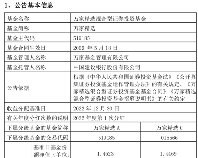 同日,万家基金发布公告称,旗下产品万家精选将于2月2日起暂停大额申购、转换转入、定期定额投资业务,投资限额均定为不超过100万元。不过,在2月3日,该产品即公告了分红,将以2月7日为基准日进行年内首次分红,每10份A/C类份额分别分红0.46元和0.45元,可供分配利润为2.90亿元。