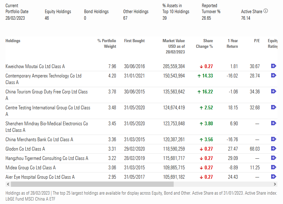 欧洲资管巨头安本近期公布的数据显示,旗下海外中国股票基金2月仍在加仓中国核心资产。截至2月末,安本标准中国A股股票基金前十大持仓股票分布为贵州茅台、宁德时代、中国中免、华测检测、迈瑞医疗、招商银行、广联达、泰格医药、美的集团、爱尔眼科,合计持仓占比39%。