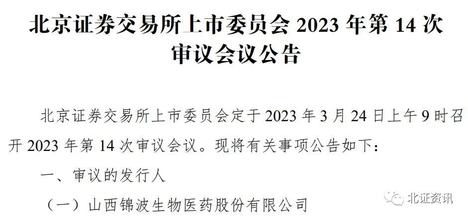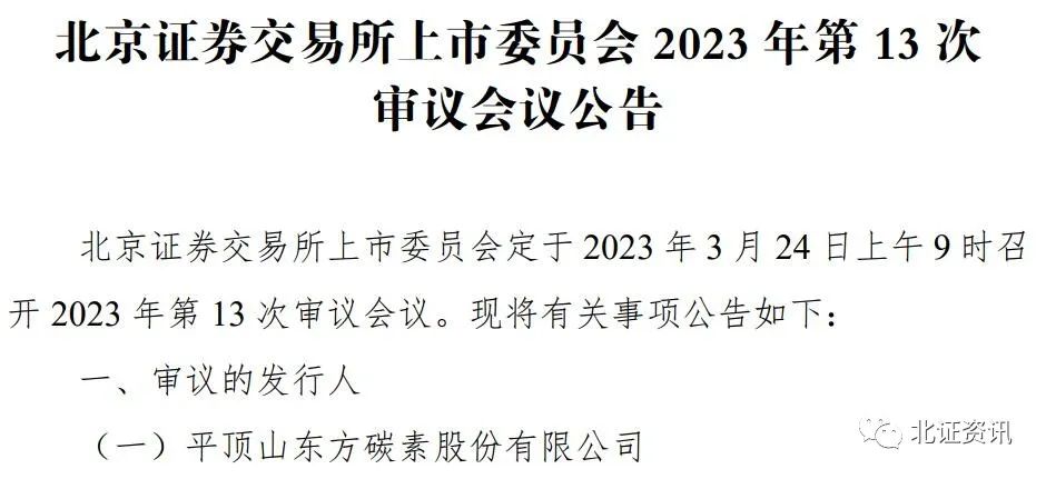 根据安排,北交所将于3月24日召开两场会议,分别审议东方碳素和锦波生物2家公司北交所公开发行并上市的申请。