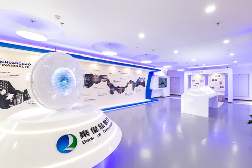 秦皇岛银行金融教育示范基地,充分运用大数据、人工智能等前沿科技成果,以多媒体触屏互动桌、金融直播等为依托,使社会公众更加直观地感受数字模式下的现代金融生态。(图片由秦皇岛银行提供)