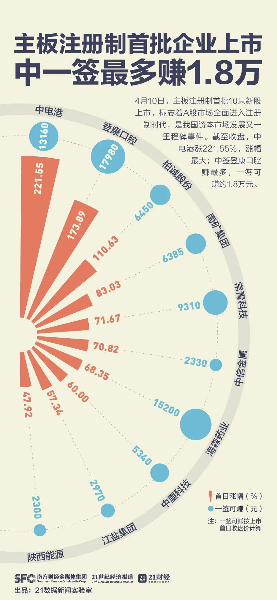 4月10日,沪深两市10 家主板注册制企业正式上市交易,受到投资者的热捧。