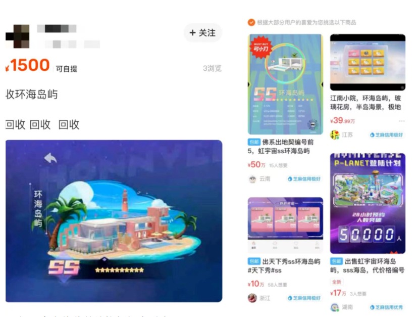 目前,在二手交易平台和QQ群里,虹宇宙的房产几乎是“一天一个价”。相比此前动辄数十万元的虚拟房产,现在的价格已经缩水至几百元到几十元。在二手交易平台上,还有买家欲出价1500元收购最高级别SS级环海岛屿。