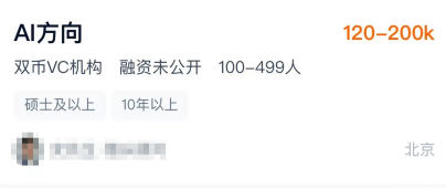 某招聘网站显示,一家双币VC机构正在招聘Al方向投资seniorVP-MD(高端投资人员),开出了12万元-20万元的月薪。