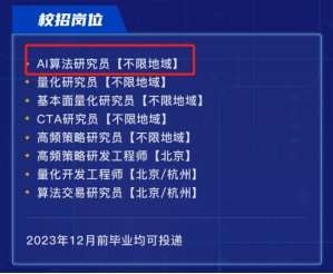 一位百亿量化私募人士向记者表示,“我们公司一直都在招AI方向的人才。”据其介绍,公司在通过校招或社招挖掘AI领域的人才,年薪在50万元-200万元不等。如果是经验丰富、能力特别突出的候选人,薪资可以一事一议,地域也没有限制。