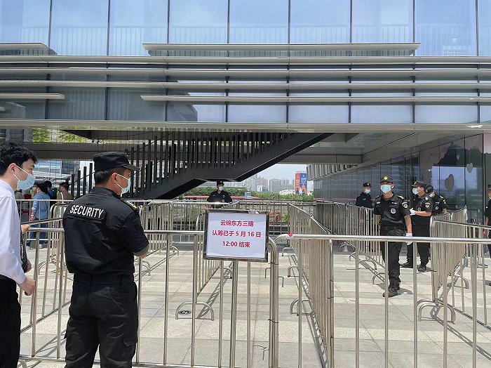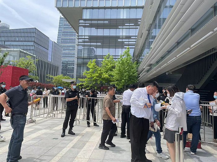 5月16日上午,云锦东方进入认筹的最后一天,据界面新闻观察,现场仍聚集上百人在烈日下,有人在排队进场认筹,有人在整理资料。因为此次认筹只能进入一人,也有不少家属在向保安争取进入现场,“显然不放心另一半。”