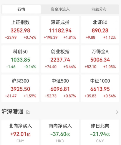 宁德时代,今天大涨8.19%,带动“创业板指”大涨3.44%。截止收盘沪指涨0.74%,深成指涨1.81%,创业板指涨3.44%。北向资金净买入92亿元,2729只个股上涨,2241只个股下跌,