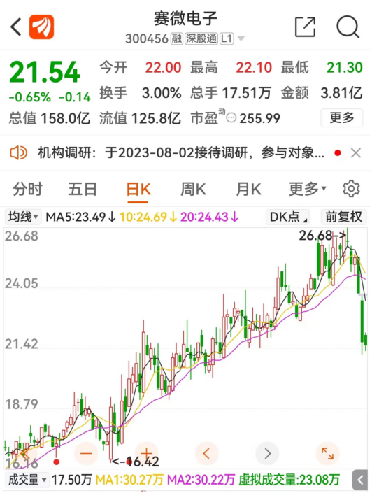 国内半导体公司赛微电子近两日股价连续大幅下跌,引起市场关注。