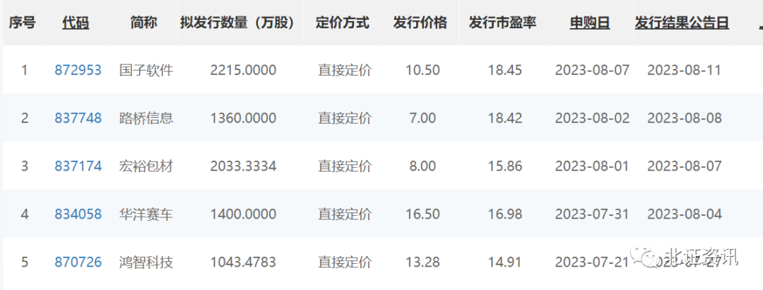 而北交所网站显示,包括国子软件在内,目前处于发行状态的公司已达5家,还有路桥信息、宏裕包材、华洋赛车和鸿智科技。