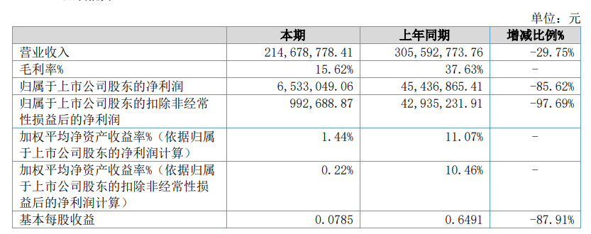 不过,美邦科技上半年“不太好过”。今年上半年,美邦科技实现营业收入约2.1亿元,同比下降29.75%;实现归属于上市公司股东的净利润约653万元,同比下降85.62%;实现归属于上市公司股东的扣除非经常性损益后的净利润约99万元,同比下降97.69%。