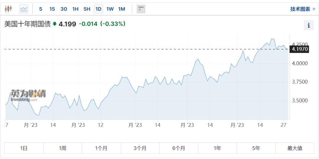 那么,究竟是何缘故呢?分析人士认为,最主要的原因还是因为外围关键变量发生了变化。昨晚,美国十年期国债收益率继续走低至4.2%下方。该变量向来是成长股的风向标,我们可以从下图得出结论:在该收益率持续上行阶段,成长股的表现并不好。