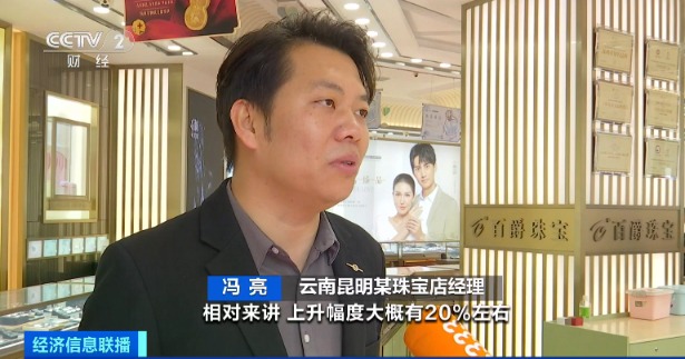 云南昆明某珠宝店经理冯亮:今年市场比起去年来说,上升幅度大概有20%。