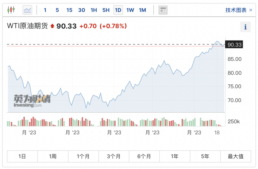 国际油价在过去一个月累计上涨了27%,创出近十个月以来的高点。根据摩根大通的说法,其中约25%的变化归因于高于预期的石油需求,而75%归因于主要的供应削减,例如欧佩克+组织在过去一年中多次削减原油产量。