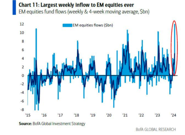 当地时间1月26日,美国银行策略师Michael Hartnett援引EPFR的数据称,中国股票基金单周吸引119亿美元资金流入,规模为2015年7月以来最大,也是史上第二大,这对中国股市来说是一个积极的信号。