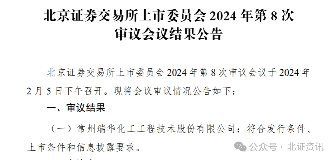 在同一天举行的北交所上市委2024年第8次审议会议上,瑞华技术也顺利过会。