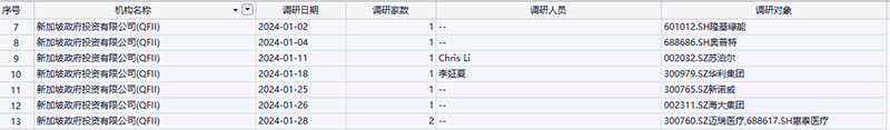新加坡政府投资则调研了隆基绿能、奥普特、苏泊尔、华利集团、新诺威、海大集团等多只个股。