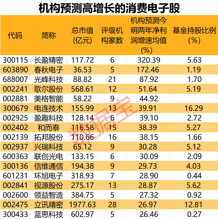 基金增仓+高增长潜力的消费电子股