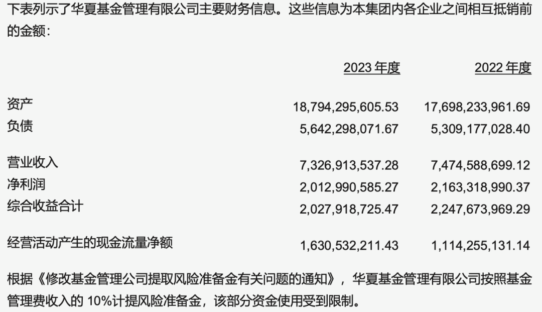 3月26日晚间,中信证券发布了2023年年度报告,公募巨头华夏基金在2023年的经营情况浮出水面。华夏基金在2023年实现营业收入73.27亿元,利润总额为26.75亿元,净利润为20.13亿元。