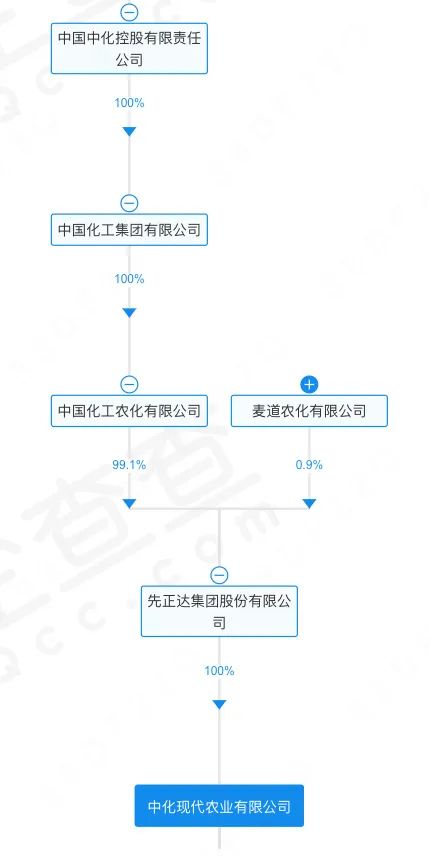 中化现代农业有限公司则由先正达100%控制,后者同样隶属于中化控股。