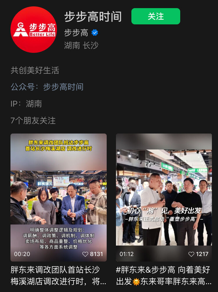 就在4月初,*ST步高发文称,3月31日至4月2日,河南胖东来商贸集团董事长于东来率高管团队抵湘,考察了长沙、湘潭部分步步高门店、物流中心,双方同时进行了座谈交流,胖东来正式启动“帮扶”,主导步步高超市优化、调改行动。