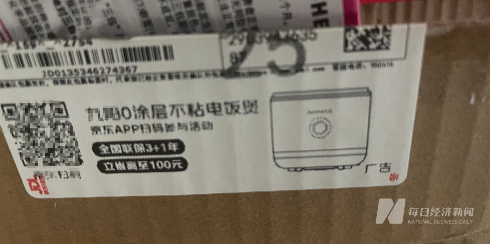 不过记者也发现,面单上的广告并非全部都是通过送礼物诱导消费,有一个快递包裹上印有某电饭锅产品图片和电商平台上的扫码购买二维码。