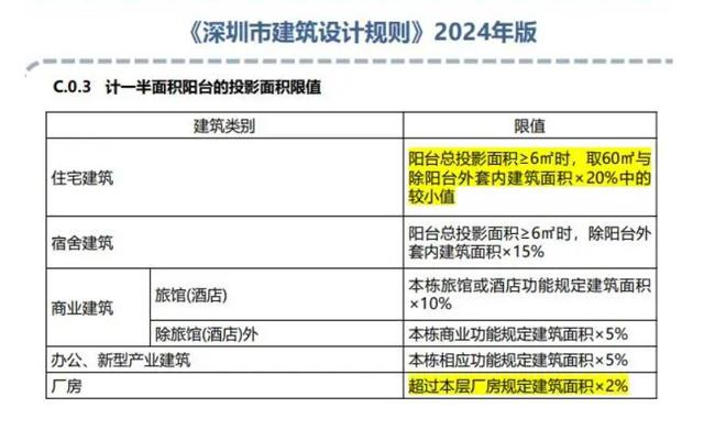 比如住宅户型设计上,有望出现更多具生活气息、受市民欢迎的大阳台:2024版《深圳市建筑设计规则》增加“计一半面积的阳台进深不超过2.4m,超过部分的水平投影面积应全部计入规定建筑面积”内容。此前,阳台的进深不能超过2.4m,修订后阳台可以把进深做大,对超过2.4m部分计入规定建面。而在满足条件下可不计入建筑面积的凸窗,修订后进深也由0.6m增加至0.8m。这意味着住宅的“飘窗”面积将可加大一圈。