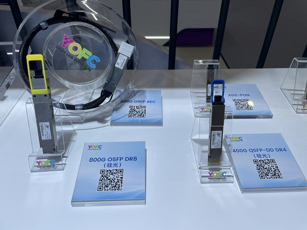 (光迅科技1.6T硅光模块首次在国内展会展出财联社记者摄)