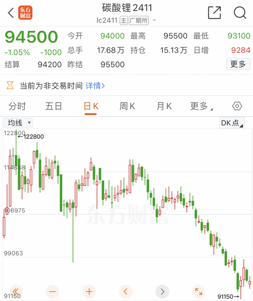 在期货市场上,碳酸锂期货价格持续下探,周二一度跌至86000元/吨的低位,接近上市以来最低价。截至6月28日收盘,主力合约报9.46万元/吨,6月累计跌幅达12.8%。