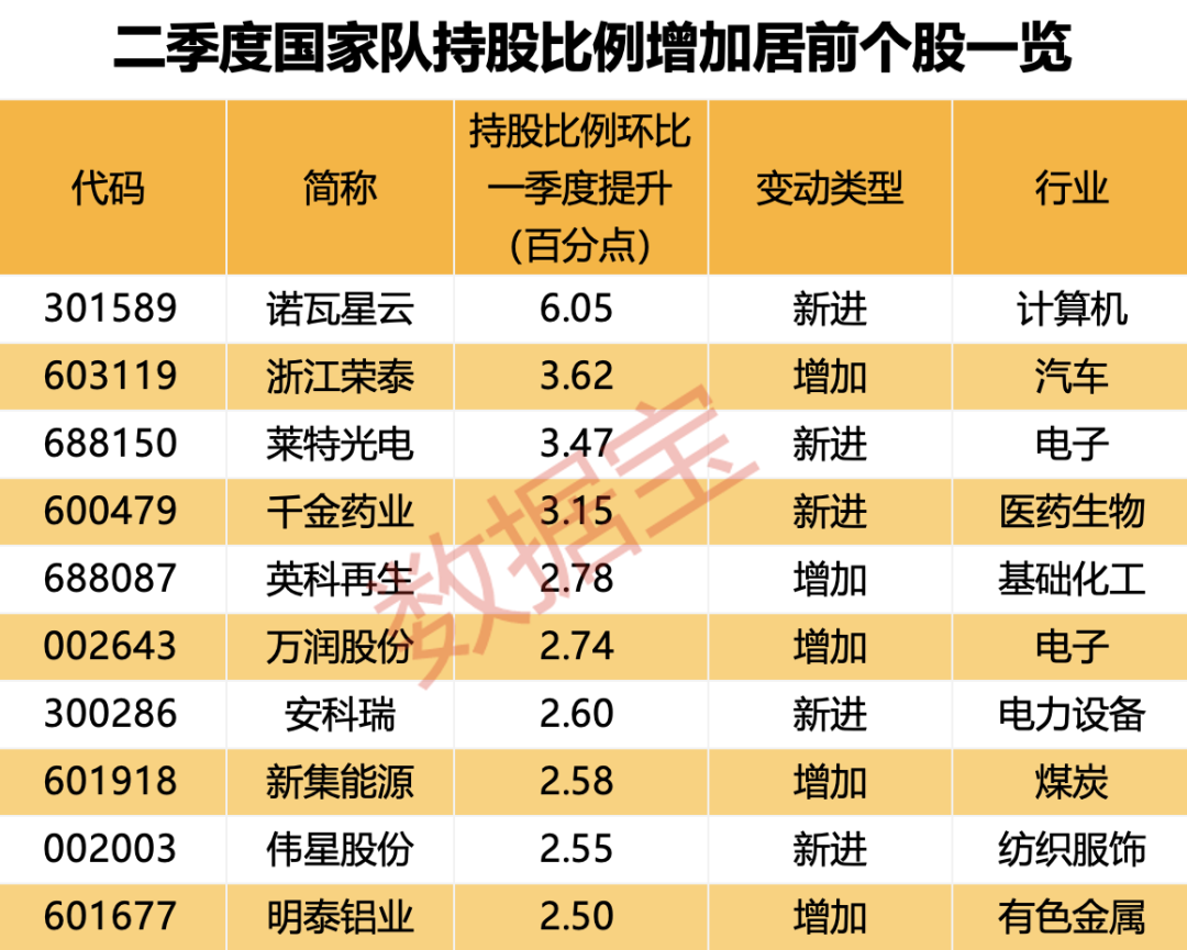 国家队最新加仓股出炉。