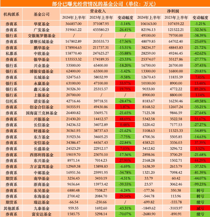 与此同时,中欧基金、诺安基金、财通基金、中邮基金、南华基金、浙商基金这6家公募2024年上半年净利润几近腰斩甚至更高;东吴基金、东海基金、瑞达基金、九泰基金与富安达基金这5家公募则均录得亏损。