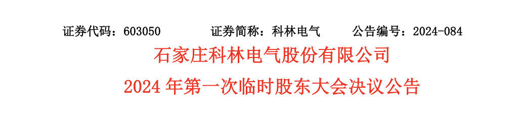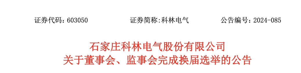 经过两天的等待后,“姗姗来迟”的科林电气2024年第一次临时股东大会决议、董事会及监事会完成换届选举的两份公告于9月1日晚发布。