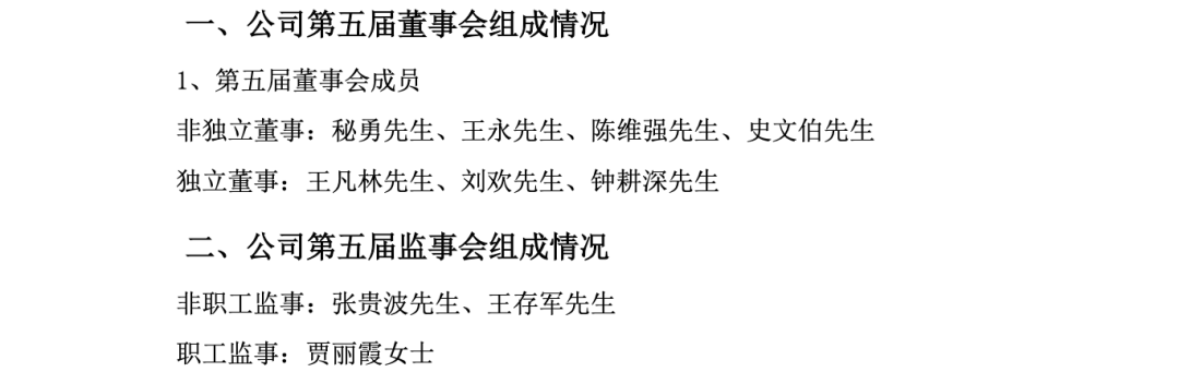新一届董事会成员确定