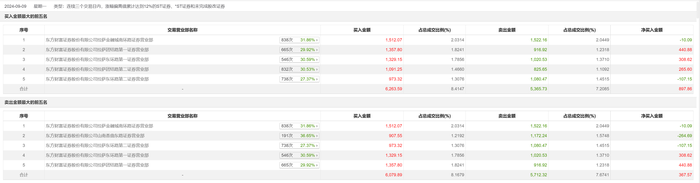 *ST景峰9月9日龙虎榜(三日榜,下同) 图片来源:choice金融终端