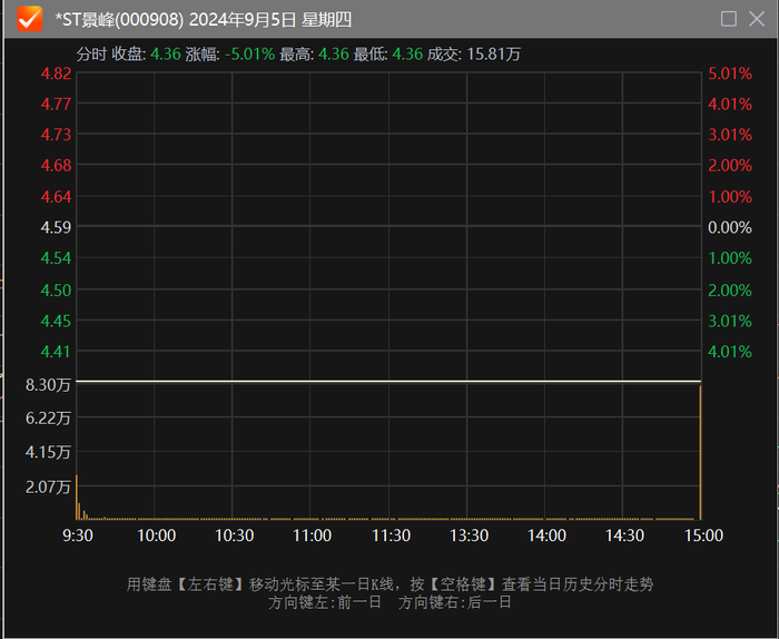 *ST景峰9月5日分时图;图片来源:choice金融终端