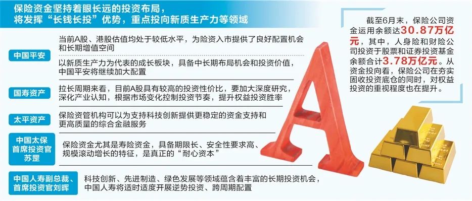 多位险资人士在接受采访时提到,将发挥“长钱长投”优势,重点投向新质生产力等领域。
