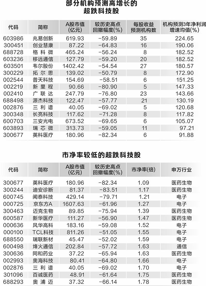 88只高增长潜力科技股超跌 超两成市净率不足2倍