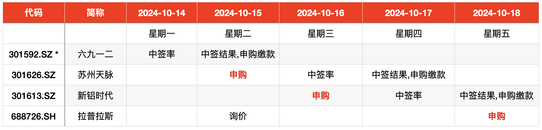一,本周新股申购