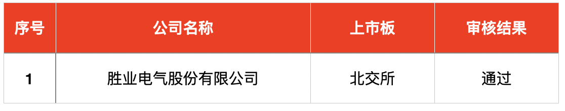 发审委审核方面,上周共有1只新股上会,胜业电气股份有限公司获得通过。