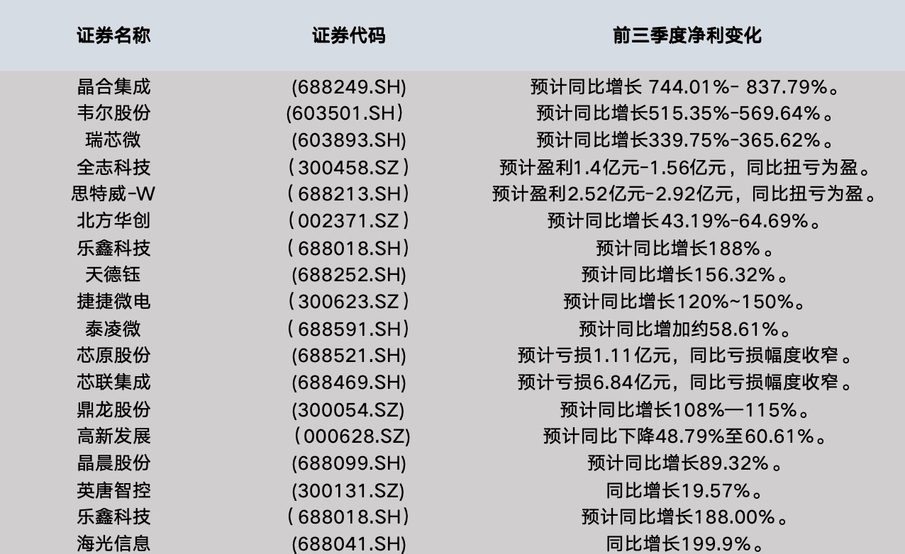 (A股半导体公司Q3业绩情况财联社记者不完全统计)