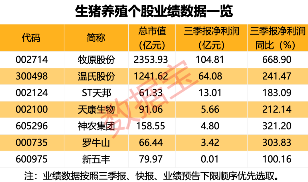 截至目前,养猪上市企业三季报业绩全线扭亏。