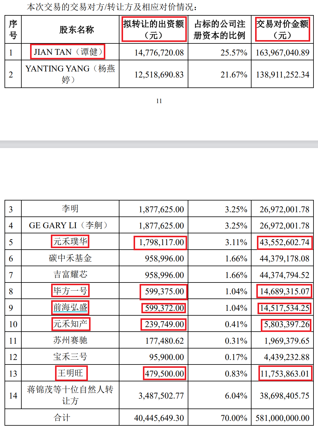根据公告披露的相关数据,此次交易完成后,苏州赛微原实控人谭健所转让的出资额将获得约10倍回报;元禾系的两只基金、欣旺达系基金及其实控人王明旺,都将从苏州赛微退出,并获得约23倍回报。