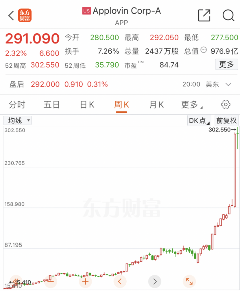 在美股市场上,截至最新收盘,AI大牛股AppLovin年内累计涨幅高达616.8%,远超英伟达同期187%的涨幅,最新总市值升至976.87亿美元(约合人民币7000亿元)。
