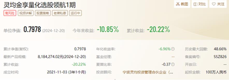 量化灵均投资2024:43产品跌逾9% 曾1分钟卖出25亿元